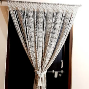 Transform your living space with our handcrafted Macrame Curtain , featuring intricate designs that add a touch of bohemian elegance to any room. Made from high-quality cotton cords, this curtain measures approximately width 36 inches height 84 inches making it perfect for use as a window valance or as a beautiful statement piece on large walls. Its versatile design allows it to stand out in various settings, from cozy home interiors to chic event backdrops.